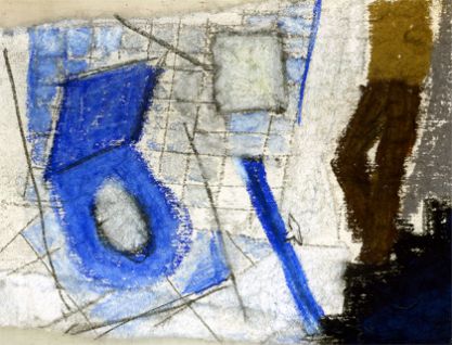 J’y vais, descends quelques marches. La porte des toilettes apparaît, très étroite, d’un bleu lumineux.