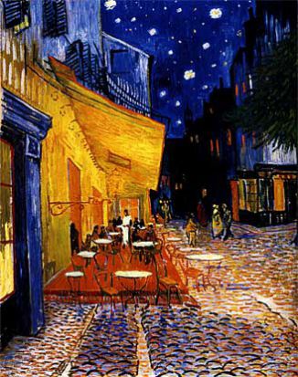 "Terrasse du café le soir", la toile de Van Gogh peinte à Arles, me faisait rêver. Adolescent, ce bleu nuit, ce jaune de lumière électrique, cette perspective qui annonce l’Expressionnisme ne pouvait que me plaire. Une sorte de rêve éveillé. Et puis, le nom de Arles, ville inconnue du sud, la simplicité du vocable, sa rigidité, les quelques toiles de l’artiste des champs alentours.