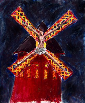 Pigalle, le Moulin Rouge (“moulin wouge” des touristes). D’un rouge plus pastel que le sang qui coule de ses doigts. En surface il y a les seins frais, les belles jambes, les sourires, le french cancan joyeux qui forment le côté pile ; la drogue, l’alcool, le sexe des cabines, de la prostitution le côté face... Mais en creusant juste un peu on s’aperçoit que le spectacle illustre à merveille l’extérieur : un aquarium géant où une fille danse avec un python, des chevaux nains qui ne font que passer, un ventriloque en costume… Quand on sort on retrouve ces figures étranges : on voit d’abord dans le hall la photo du ventriloque 20 ans auparavant, avec la même marionnette ; quand on arrive sur le trottoir, avec un peu de chance on voit les chevaux rentrer dans leur toute petite roulotte, sagement les uns derrière les autres, la crinière en brushing ; si on s’achète le journal on lit que le Moulin passe en jugement pour ségrégation raciale… tout ça dans la lumière des néons alentour. Tout ça, qu’on aurait pas dû voir, ça doit être la tranche qui relie les deux faces. Il n’empêche que c’est un des monuments de Paris les plus photographiés. Sur combien de photos est-ce que j’apparais ? À pied, à vélo, le jour, la nuit, pâle, bronzé, les cheveux courts, longs, je dois être là à l’arrière plan... posé sur une table de buffet, collé dans un album, au Japon, aux USA, en province…Pigalle, la bête de foire.