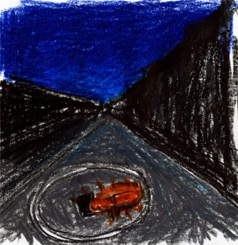 Un énorme cafard marche à mes côtés, un de ceux qu’on disséquait en seconde, ceux d’Amérique du Sud. Peut-être quelqu’un en a-t-il ramené dans sa valise puis ils se sont reproduits puis ils pullulent. Il rentre dans un trou de bouche d’égoûts. J’ai des frissons pour les habitants de la rue.