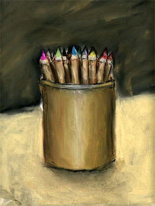 Là, je vois dans une papeterie un pot à crayons, de beaux crayons en bois, longs, épais, pointus, et il y en a un qui a la mine un peu cassée, rien de grave mais bon… il jure au milieu des autres. Et je me demande qui va l’acheter et s’il va même se vendre… pourquoi les gens ne se foutraient pas de cette ridicule défaillance physique, le bout d’une mine cassé ? Car si on le taille un peu, le crayon retrouve toutes ses facultés…