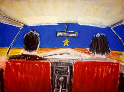Coincés dans les bouchons. Du soleil, une impression de grand retour de vacances. C'est un peu ça : on revient de Villacoublay, sur les lieux de l'examen du permis de conduire.